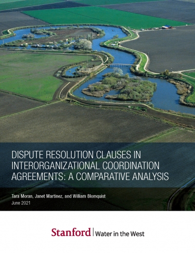 Adoption of California’s Sustainable Groundwater Management Act (SGMA) in 2014 posed a major coordination challenge for diverse public agencies by requiring them to align their activities at the scale of groundwater basins, which is not how most governing bodies are organized. Meeting this requirement meant establishing governing and operating relationships between agencies. Such interorganizational relationships (IORs) are essential in many fields, but are also prone to conflict. Understanding the factors affecting the inclusion, specificity and salience of dispute resolution clauses (DRCs) in interorganizational agreements ensures the long-term functionality of IORs. We examined 74 multi-entity agreements forming new quasi-voluntary local agencies, devoted to developing and implementing groundwater sustainability plans to achieve groundwater sustainability under SGMA.